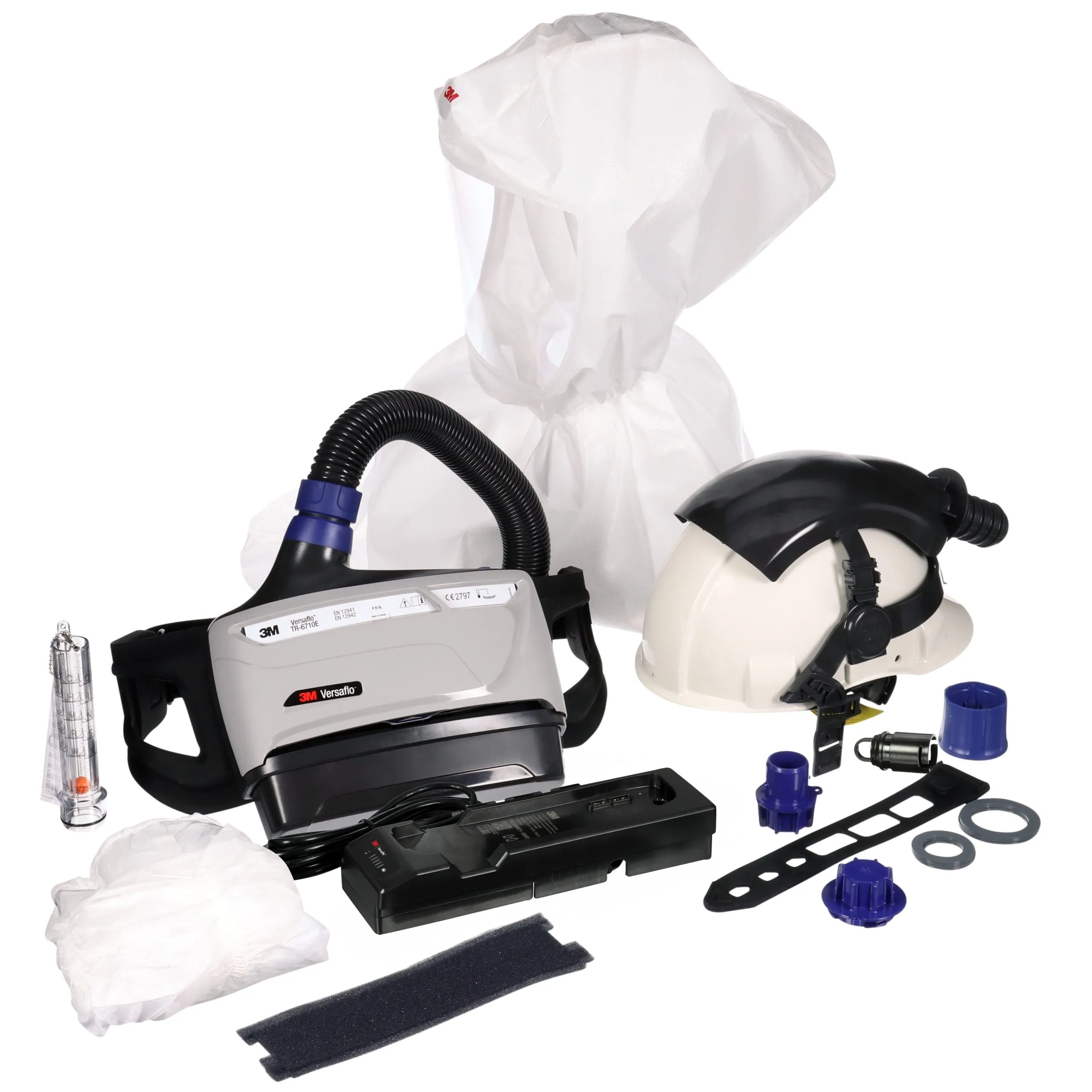 Aktion!3M TR-619+ Versaflo Starterpaket inkl. TR-602E, Zubehör und 3M Versaflo Premium-Leichthaube Ersatzhaube S-607 mit innenliegender Hals- und Schulterabdeckung inkl. 3M G3001 Schutzhelm, S-960 und weiteren Zubehör