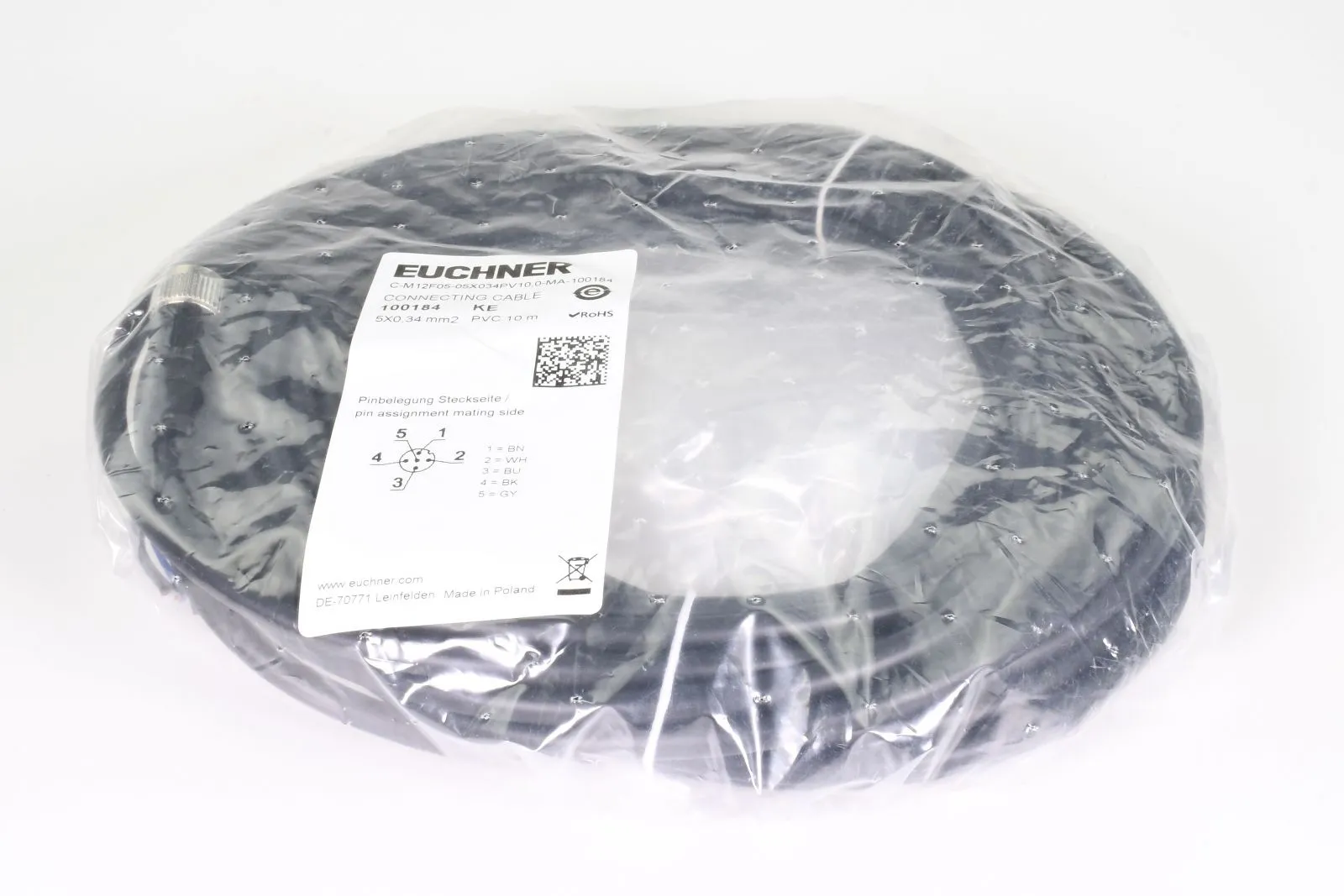 Aktion!EUCHNER 100184, C-M12F05-05X034PV10,0-MA-100184, Anschlussleitung, L=10m