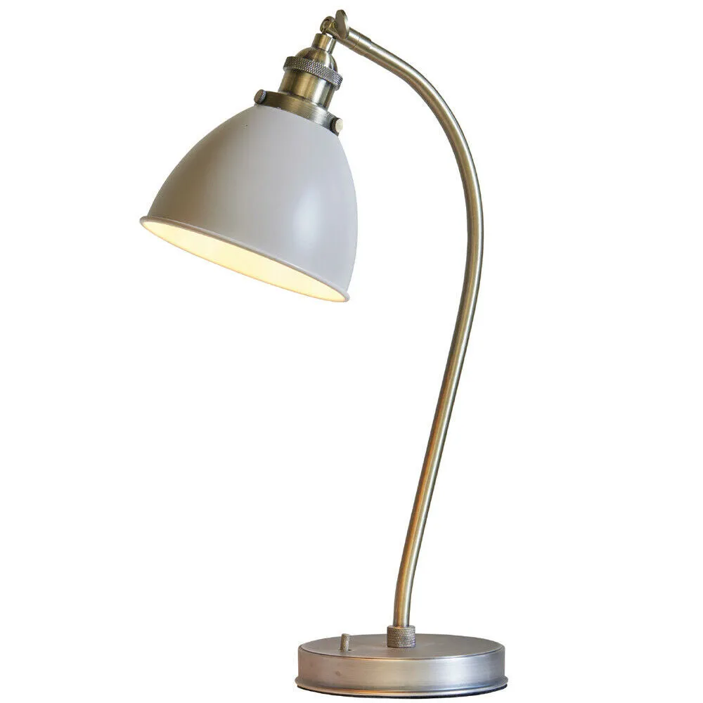 Vintage Curved Table Lamp Antique Brass & Grey Shade Industrial Bedside Light